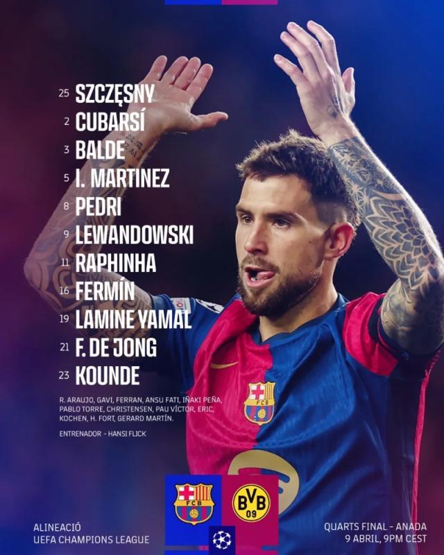 欧冠1/4决赛首回合,巴萨主场迎战多特蒙德。上半场拉菲尼亚首开纪录;下半场莱万梅开二度,亚马尔再下一城锁定胜局,最终巴萨4-0大胜对手!莱万代表巴萨进球数达到99粒。莱万离开多特后28次对阵旧主,共打进29球。